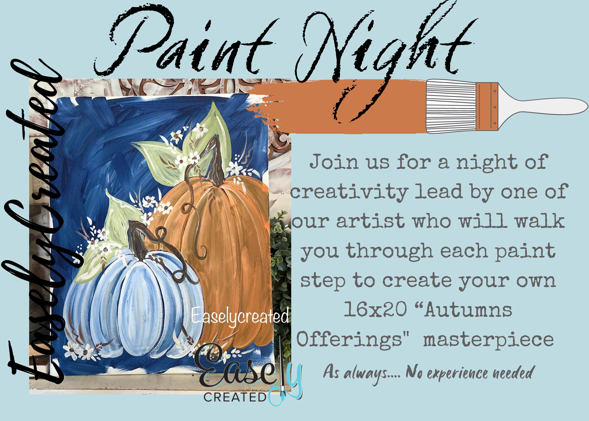 WEATHER CANCELLATIONS: If an event should ever need to be canceled due to weather, I will offer a backup date. If you are not able to attend the new date, you will be given a full refund. We ask that you leave the correct phone number and email at checkout as thats the quickest way to update you if we should need to cancel. Easely Created reserves the right to cancel classes due to low enrollment or unforeseen circumstances. There needs to be a minimum of 6 painters signed up for a class for us to have the class. If that minimum is not met, registrants will be notified prior to class time and refunded. (Private parties require a minimum of 8 painters)