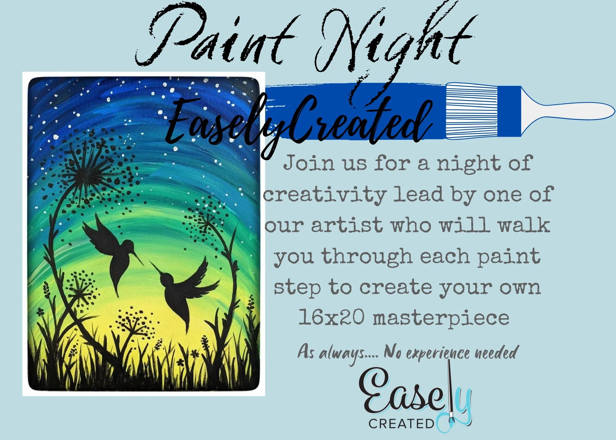 WEATHER CANCELLATIONS: If an event should ever need to be canceled due to weather, I will offer a backup date. If you are not able to attend the new date, you will be given a full refund. We ask that you leave the correct phone number and email at checkout as thats the quickest way to update you if we should need to cancel. Easely Created reserves the right to cancel classes due to low enrollment or unforeseen circumstances. There needs to be a minimum of 6 painters signed up for a class for us to have the class. If that minimum is not met, registrants will be notified prior to class time and refunded. (Private parties require a minimum of 8 painters)