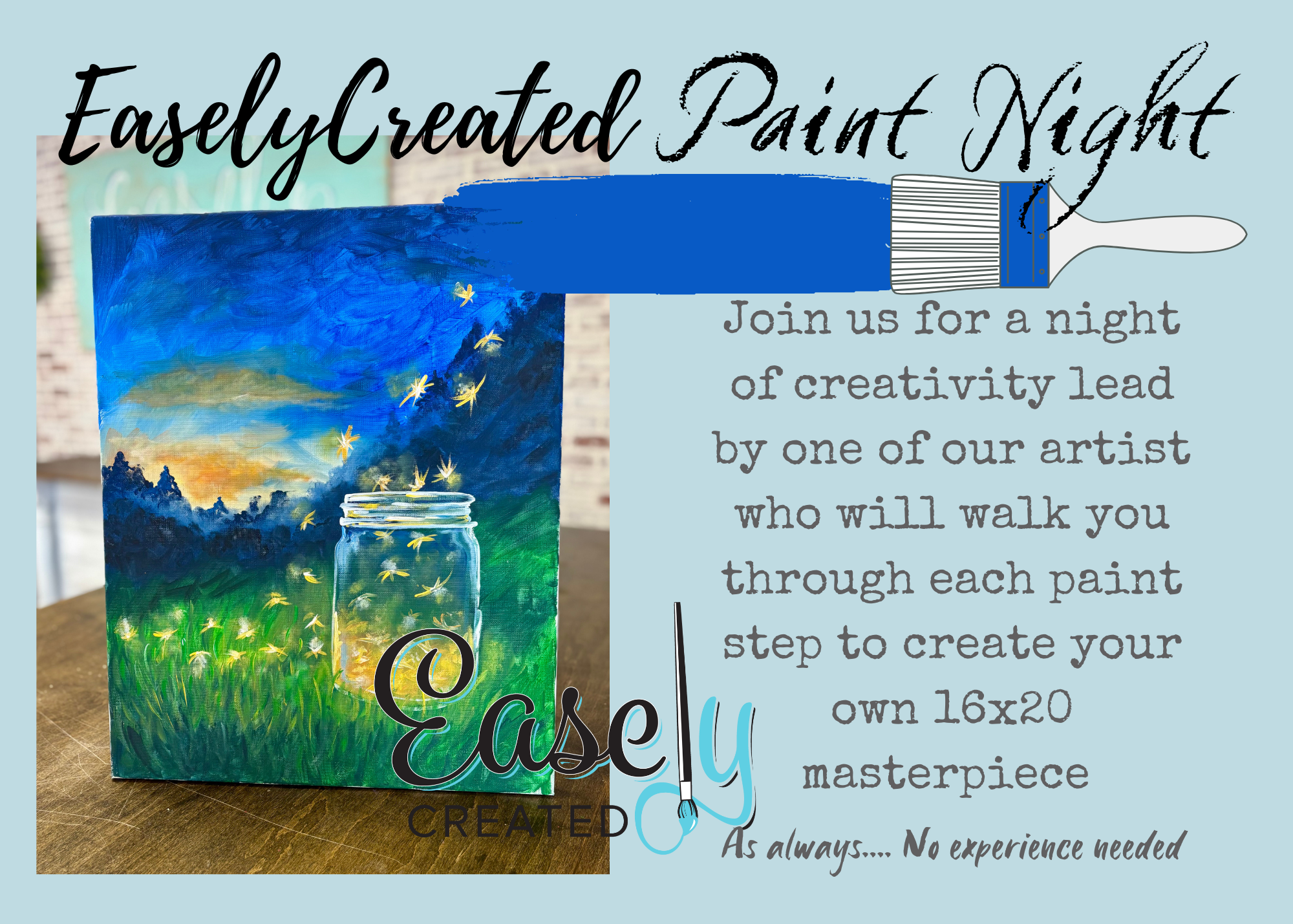 WEATHER CANCELLATIONS: If an event should ever need to be canceled due to weather, I will offer a backup date. If you are not able to attend the new date, you will be given a full refund. We ask that you leave the correct phone number and email at checkout as thats the quickest way to update you if we should need to cancel. Easely Created reserves the right to cancel classes due to low enrollment or unforeseen circumstances. There needs to be a minimum of 6 painters signed up for a class for us to have the class. If that minimum is not met, registrants will be notified prior to class time and refunded. (Private parties require a minimum of 8 painters)